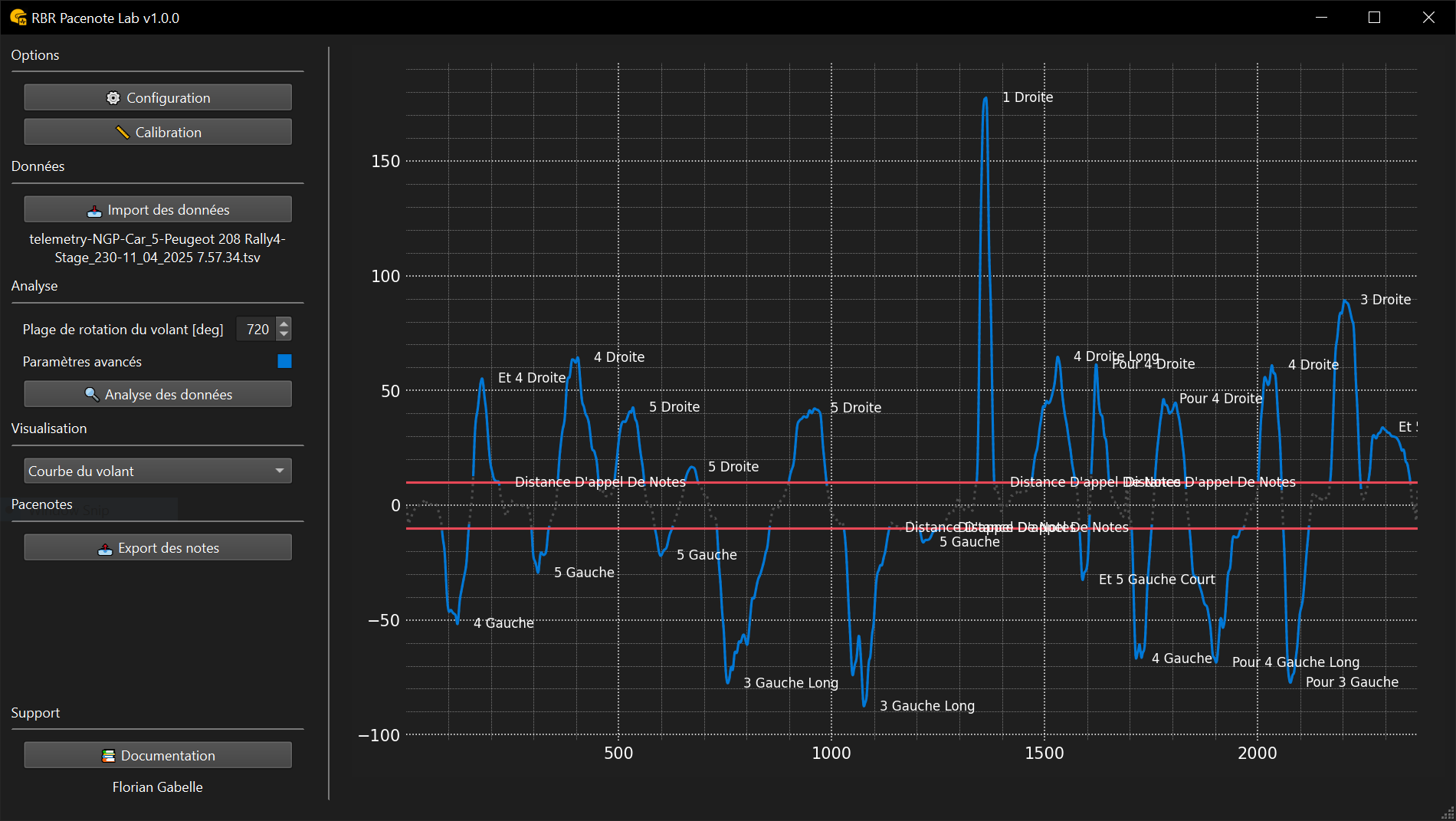 Bien qu’elle puisse paraître complexe au début — notamment si vous débutez avec la télémétrie — elle fournit des informations précieuses sur les données brutes derrière vos pacenotes.