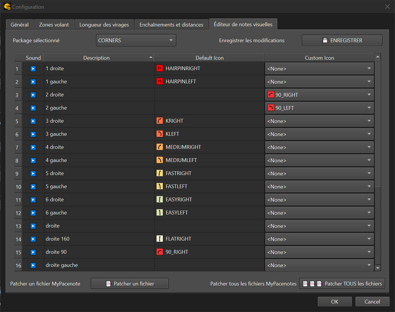 L’éditeur de notes visuelles se trouve dans la fenêtre de configuration. Il vous permet de personnaliser les icônes affichées sur la carte et en jeu pour chaque appel, en modifiant les fichiers package de votre copilote.